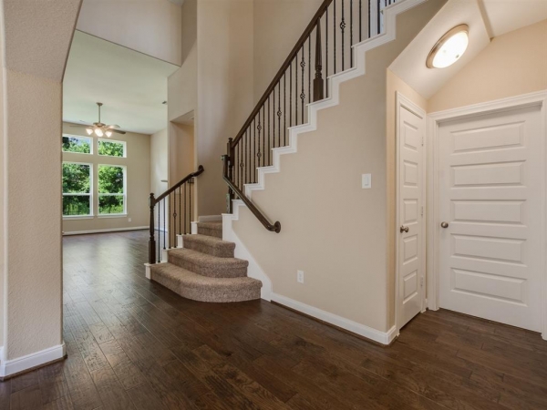 Brand NEW energy-efficient home ready NOW! The inviting two-story Lavaca has a study, open kitchen with a breakfast bar, oversized game room upstairs, and an outdoor covered patio. This home has no back yard neighbors and is open to a beautiful green space. Waters Edge features recreation center with resort-style pool, spray park, and miles of walking and biking trails. Known for their energy-efficient features, our homes help you live a healthier and quieter lifestyle while saving thousands of dollars on utility bills.